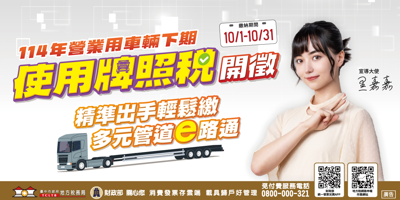 臺中市政府地方稅務局本(114)年營業用車輛下期使用牌照稅資訊